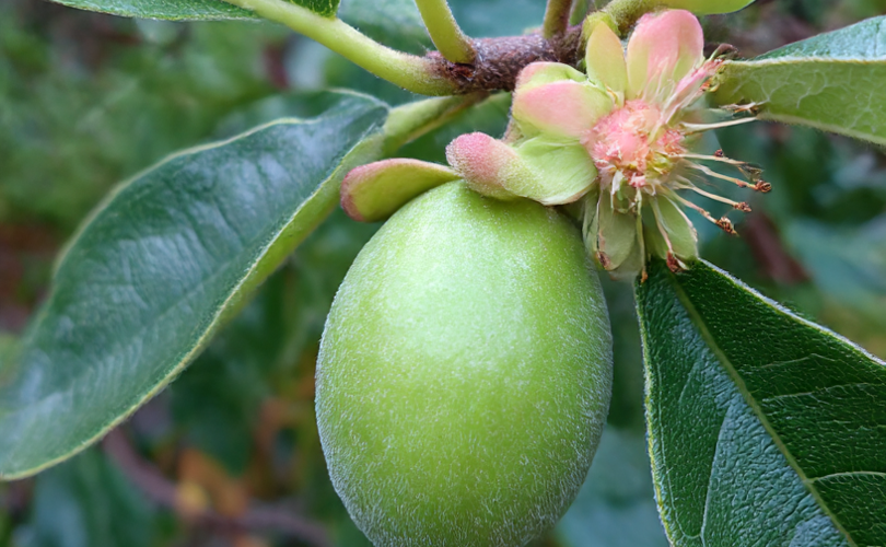 Pounamu – Early fruiting season. Medium sized fruit with tangy flavour. Dark skinned fruit. Excellent storage. Requires pollination. Named as the dark skin is reminiscent of Pounamu stone.